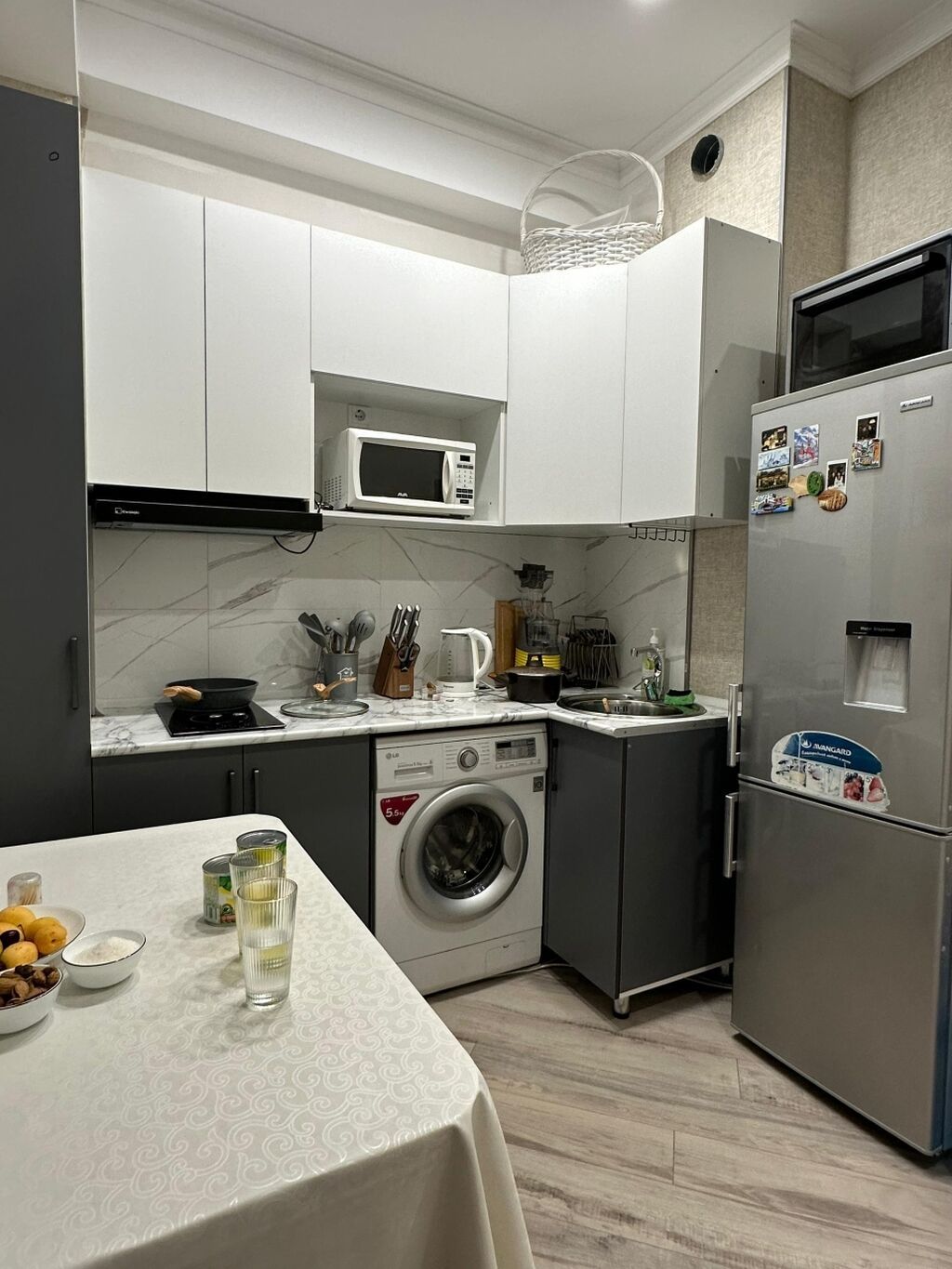 Продаётся светлая, тёплая, уютная квартира. Вся мебель и техника, кондиционер ( зима-лето)остаются. Закрытая территория, хорошая транспортная развязка. Рядом школы, садики, магазины, рынок Мадина. коммуникации центральные, тёплый пол