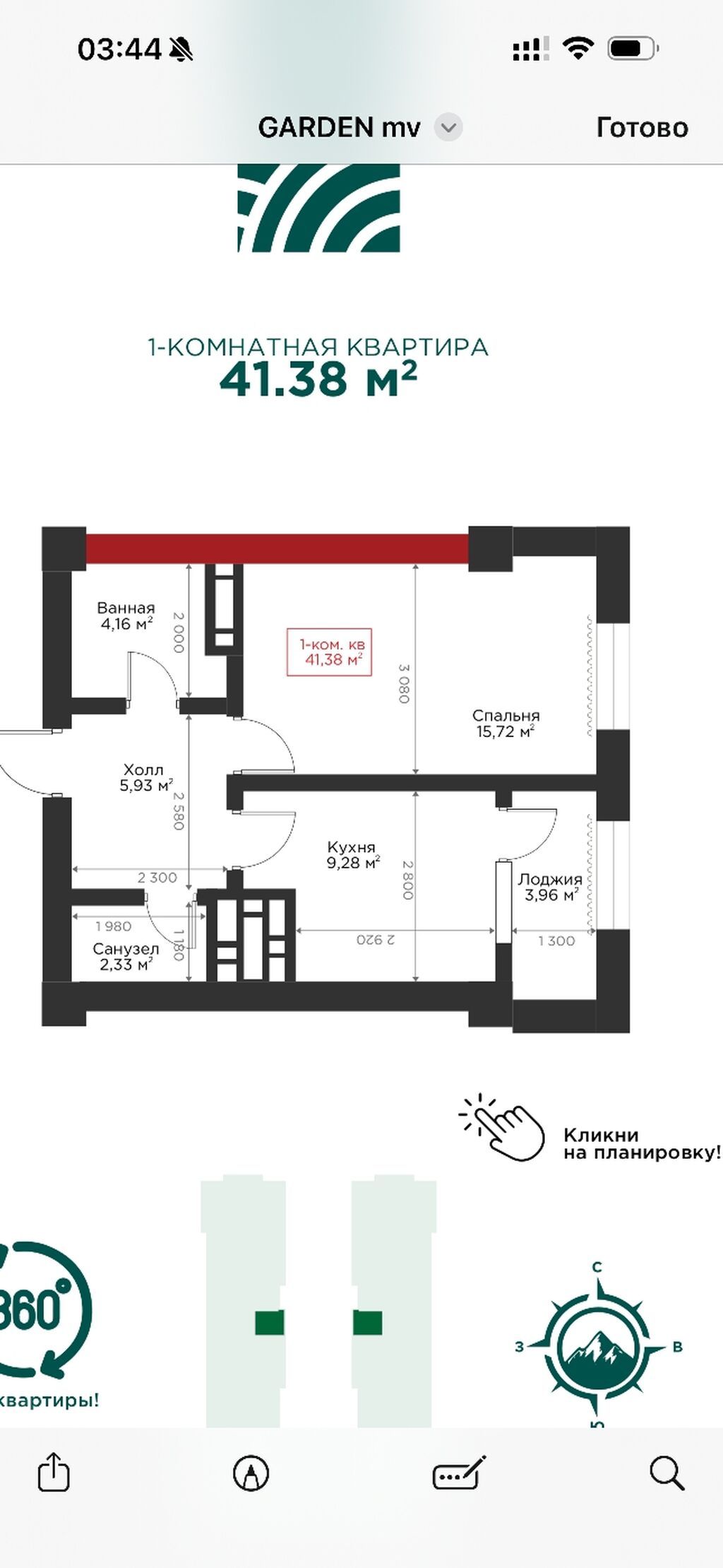 1 комната, 44 м², 9 этаж