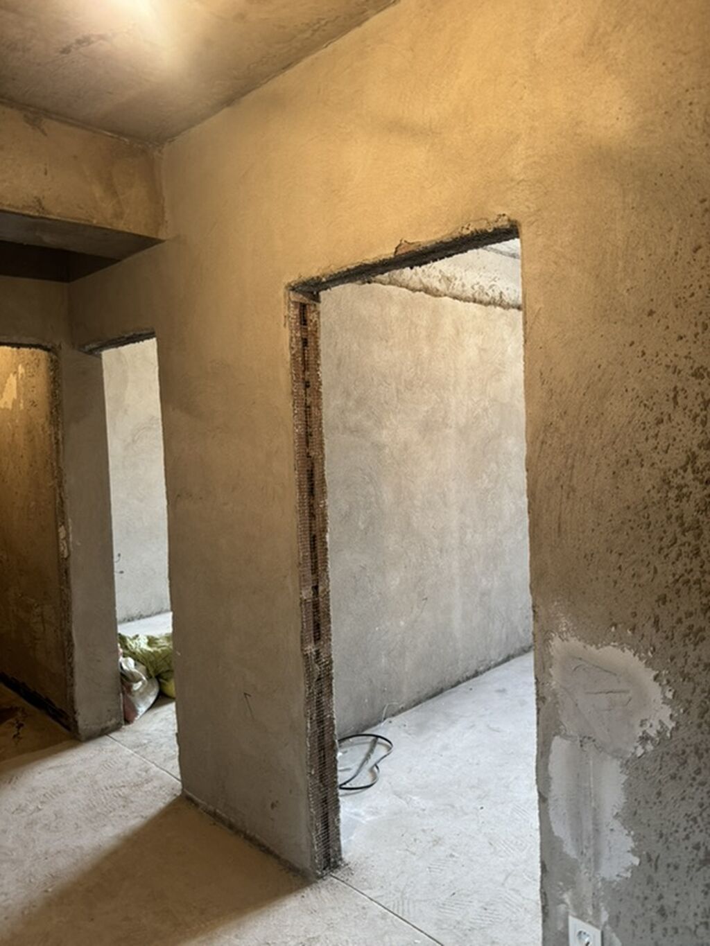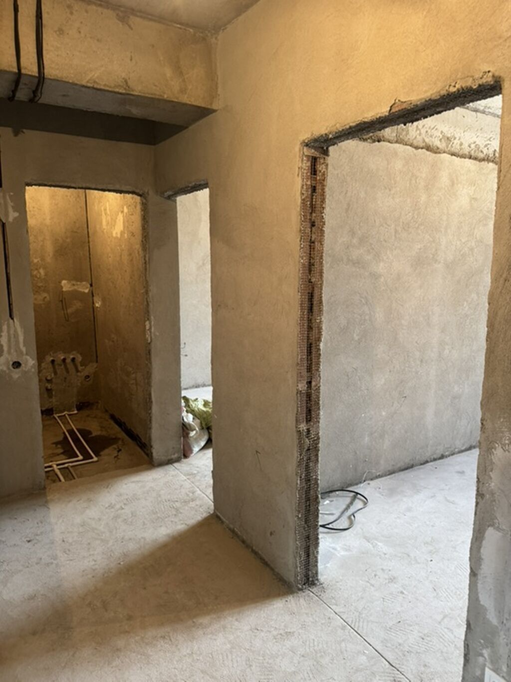 - Планировка: коридор с тремя проёмами, изолированные комнаты, санузел выделен.