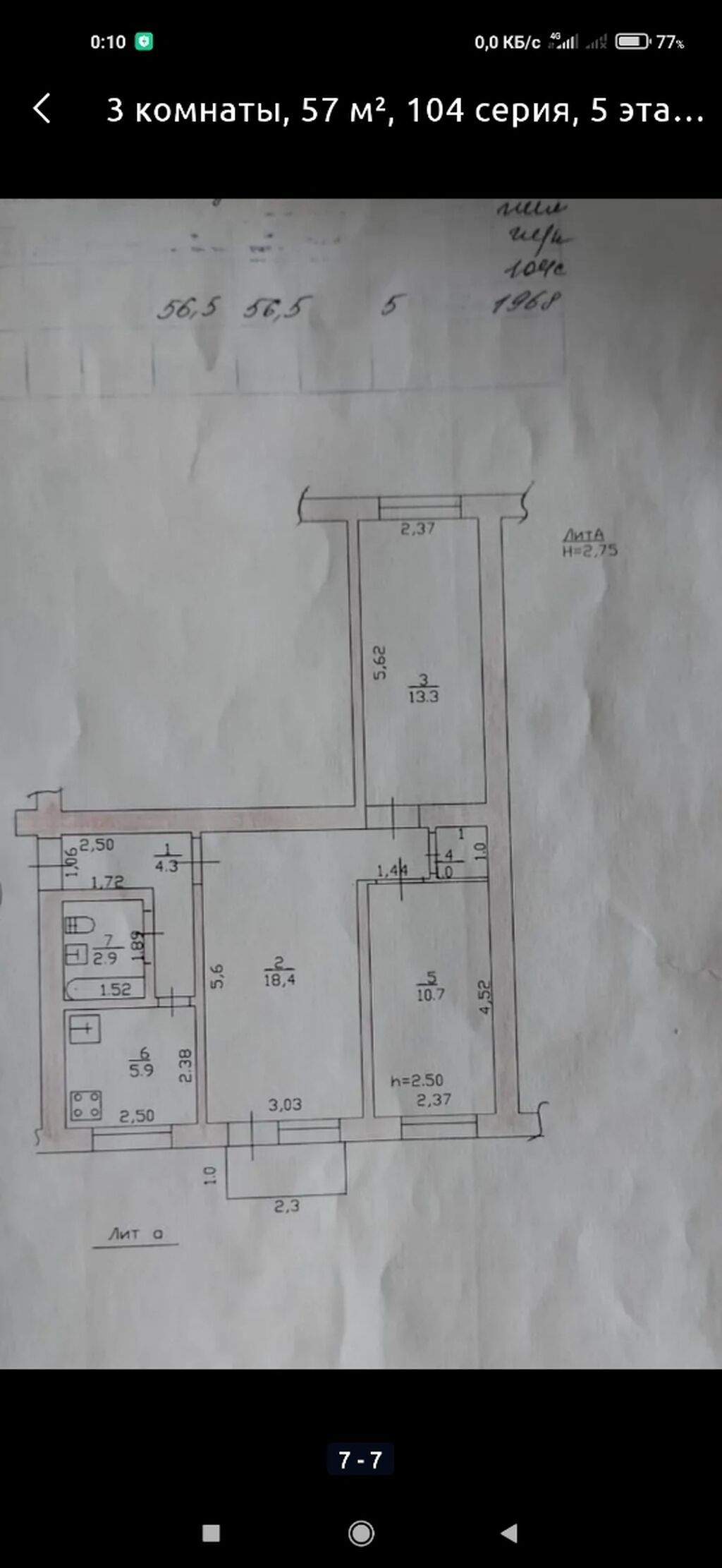 3 комнаты, 57 м², 104 серия, Старый ремонт