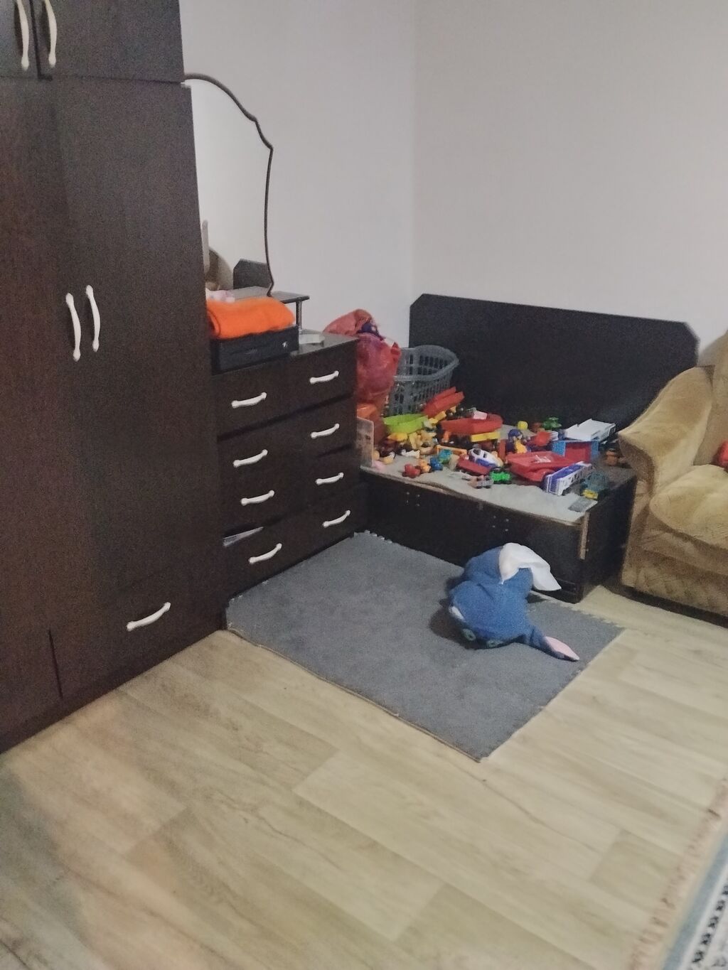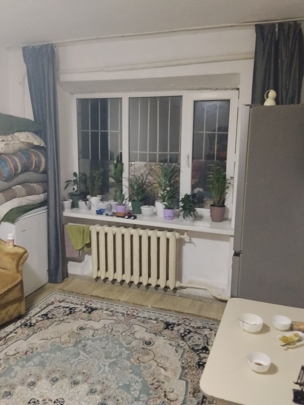 - Жилая комната с большим окном ПВХ и решетками, кухня,туалет, ванная.