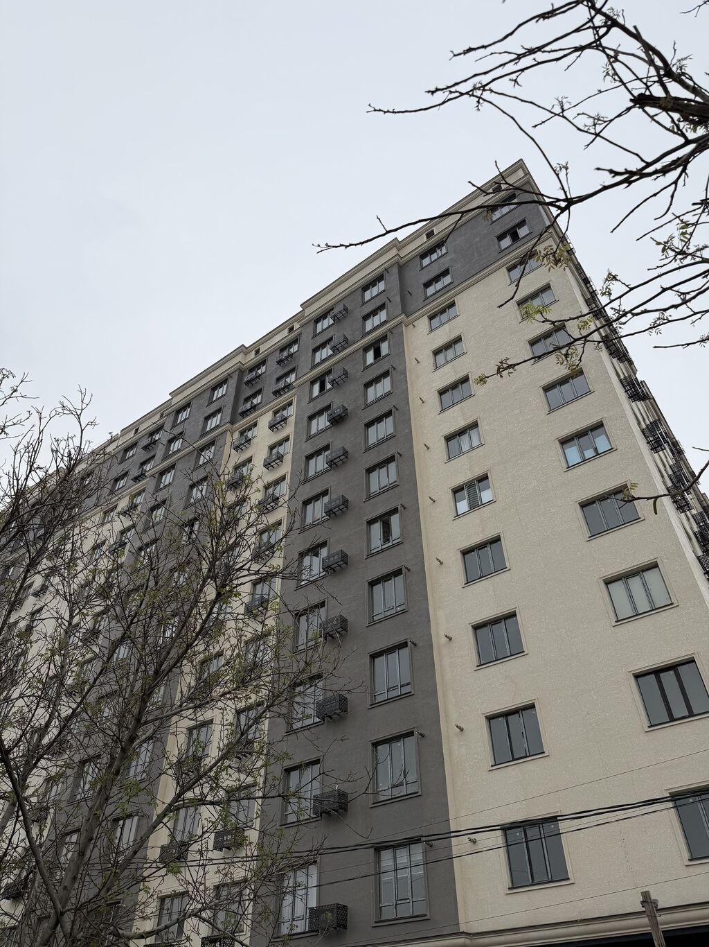 - Современный жилой дом с монолитным каркасом и фасадом в спокойной серо‑бежевой гамме.