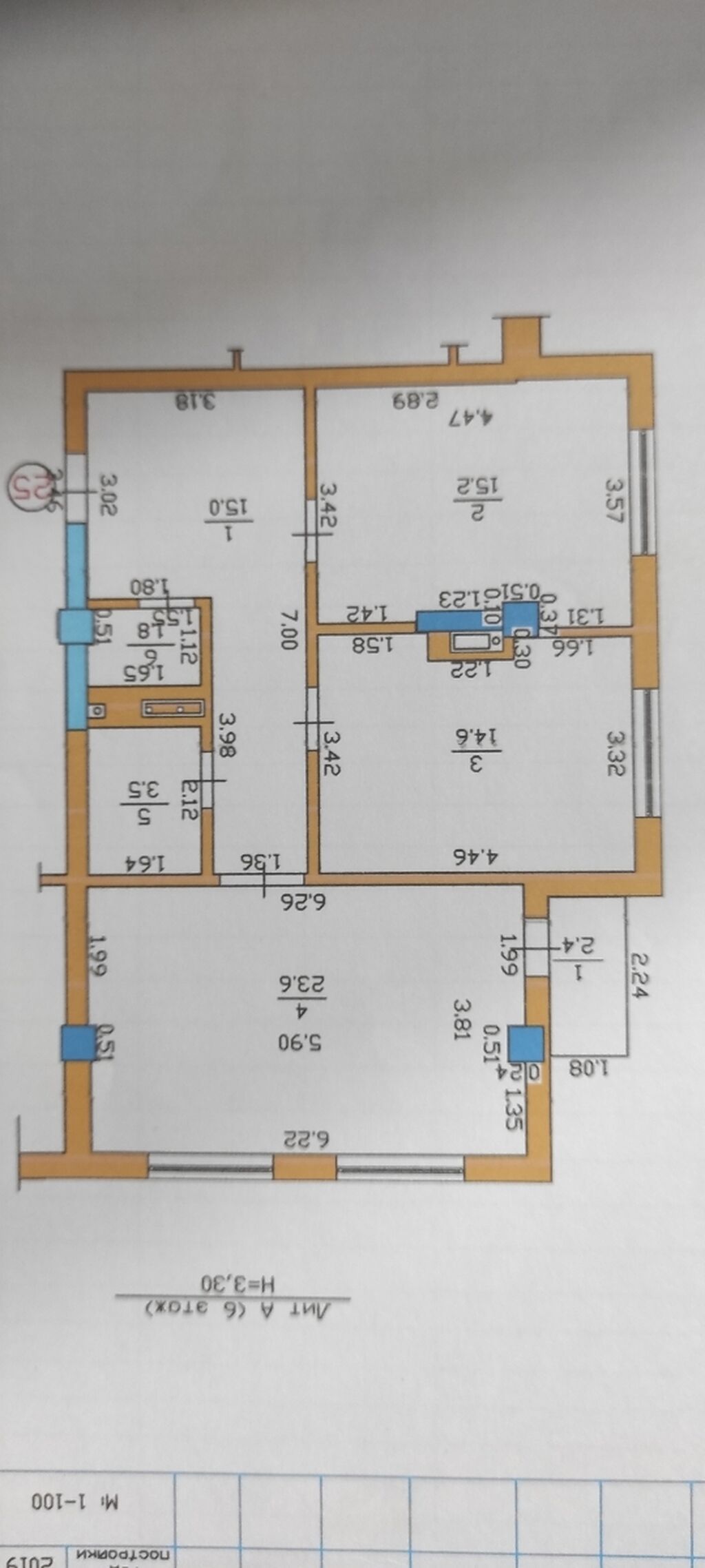 2 комн.1 санузл.74 м²6 этаж