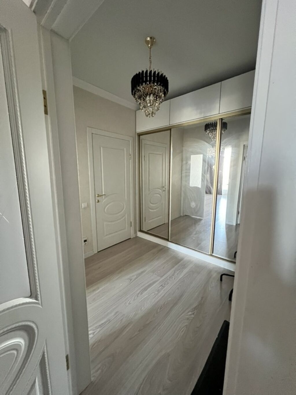 - Прихожая с большим зеркальным шкафом‑купе до потолка, удобные системы хранения.