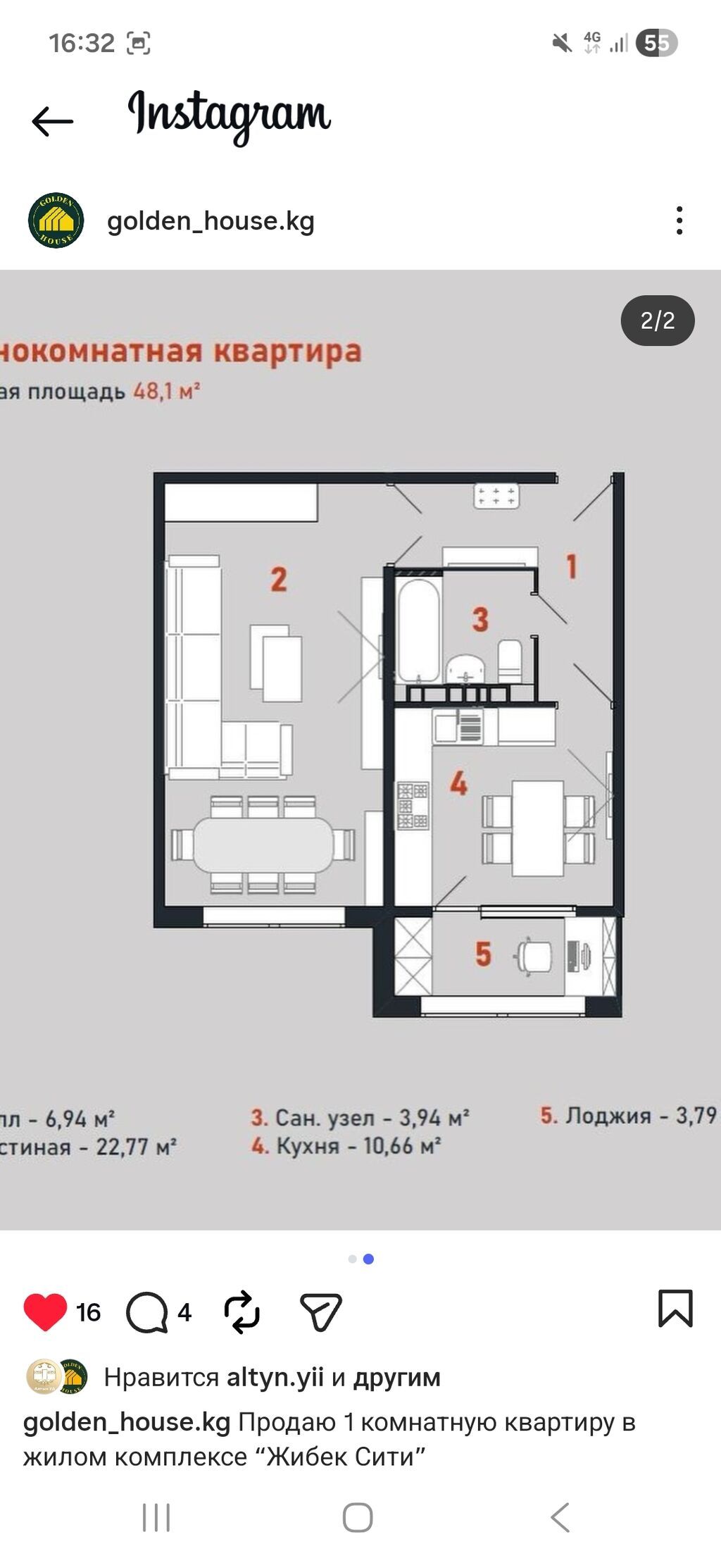 Представляем однокомнатную квартиру общей площадью 48,1 м² в жилом комплексе Jibek City. Квартира включает прихожую, гостиную, кухню, совмещенный санузел и лоджию. Комплекс Jibek City создан с учетом современных технологий и располагает развитой...