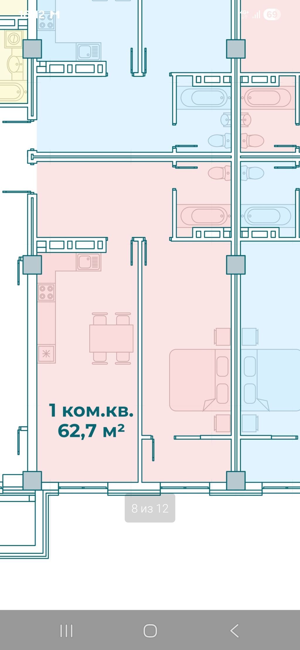 1 комната, 62 м², 12 этаж