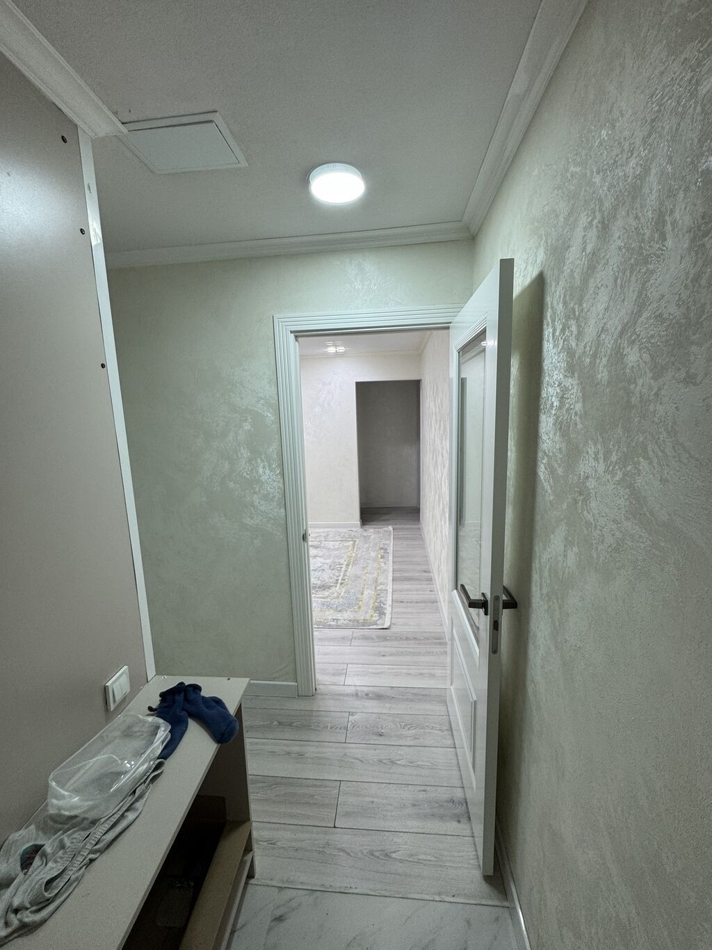 - Планировка: длинный светлый коридор, изолированные комнаты, большая гостиная с декоративными панелями и высоким потолком с подсветкой, отдельная кухня...