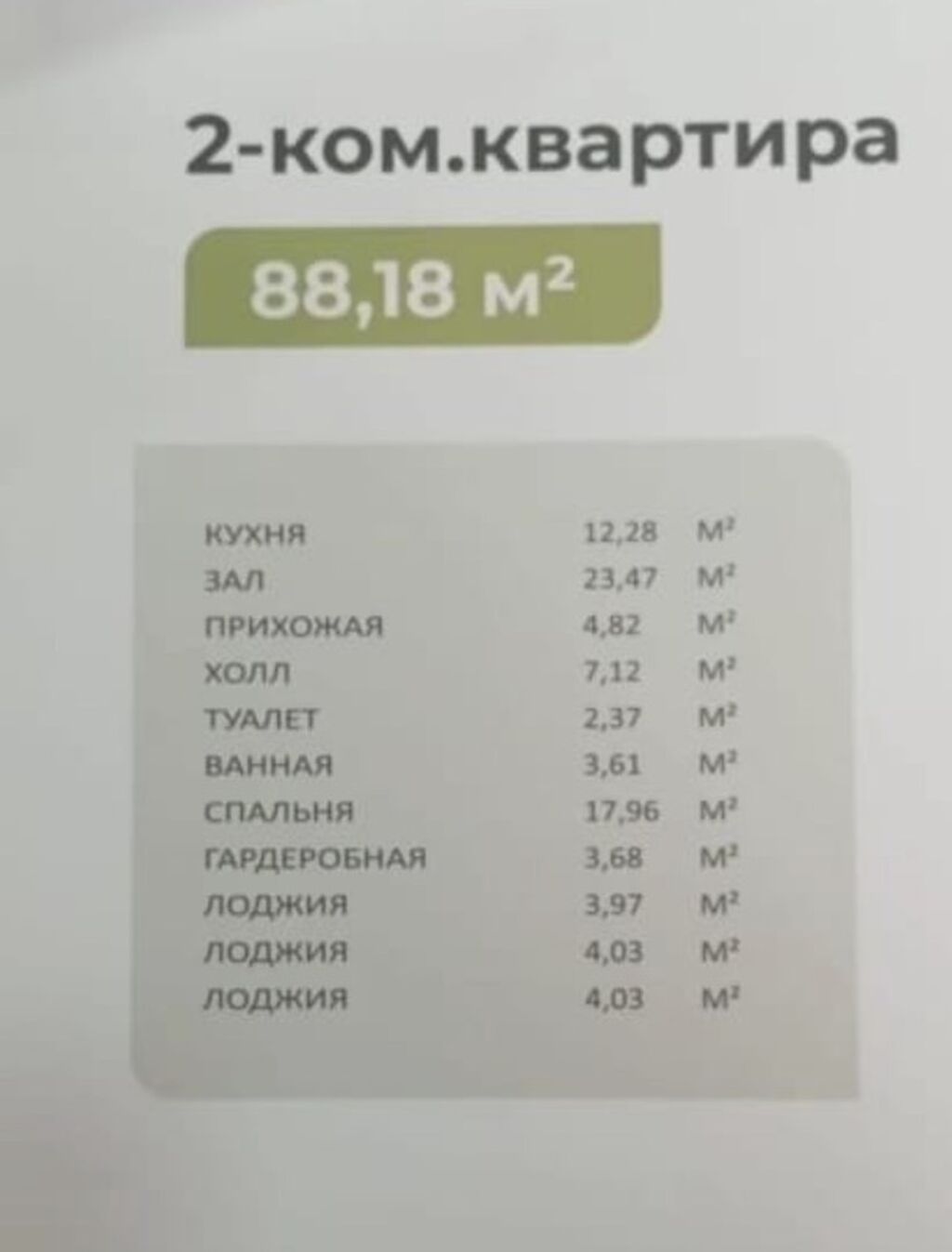 Продаётся просторная 2-комнатная квартира 88 м² с возможностью переделать в 3-комнатную!
