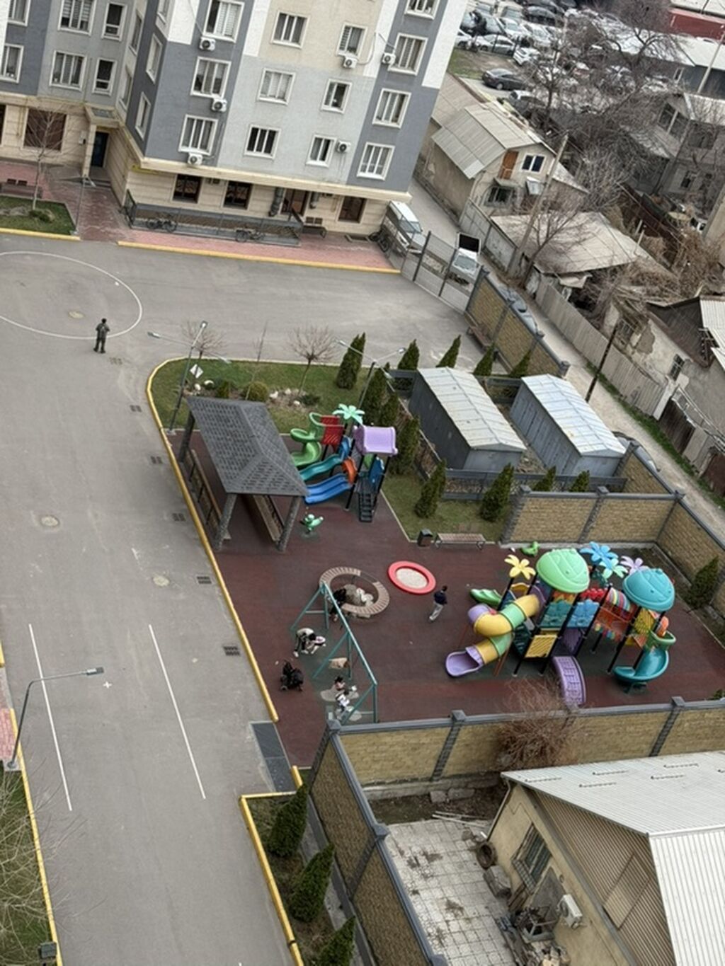 - Большая детская площадка во дворе: игровые комплексы, горки, песочница, качели, мягкое прорезиненное покрытие.