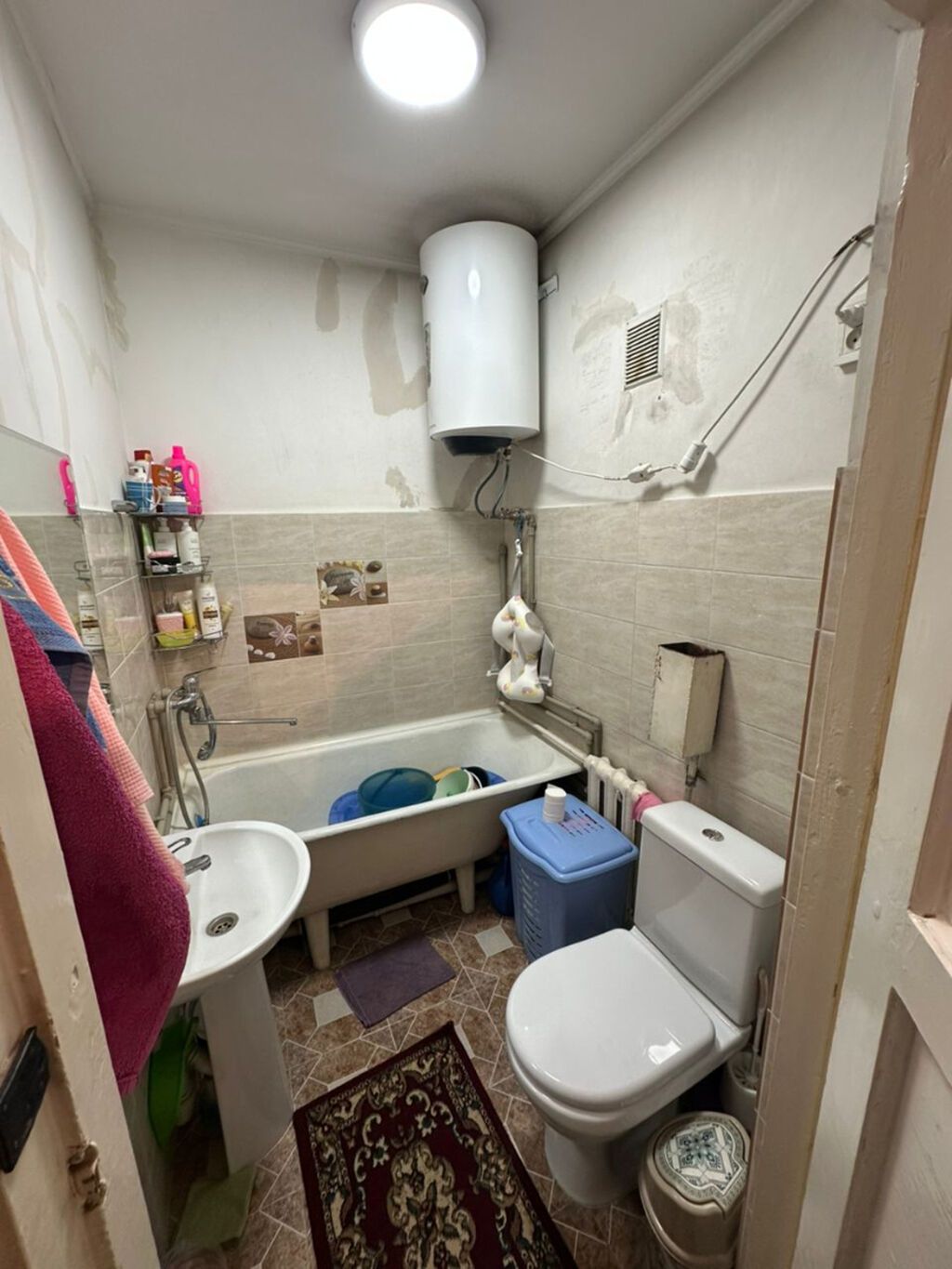 - Санузел полностью в кафеле, установлена ванна, унитаз,...