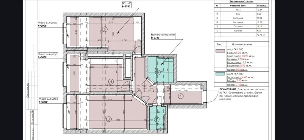 📐Площадь: 73м2 Блок В, окна выходят на Север и на горы