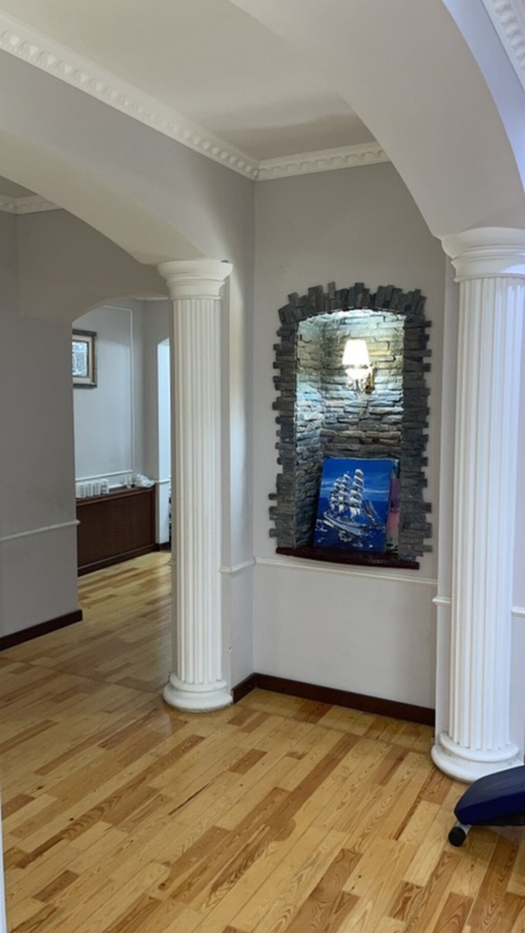- Планировка: большая гостиная с арочными проёмами и декоративными колоннами, отдельные спальня вторая спальня, кухня , санузел раздельный