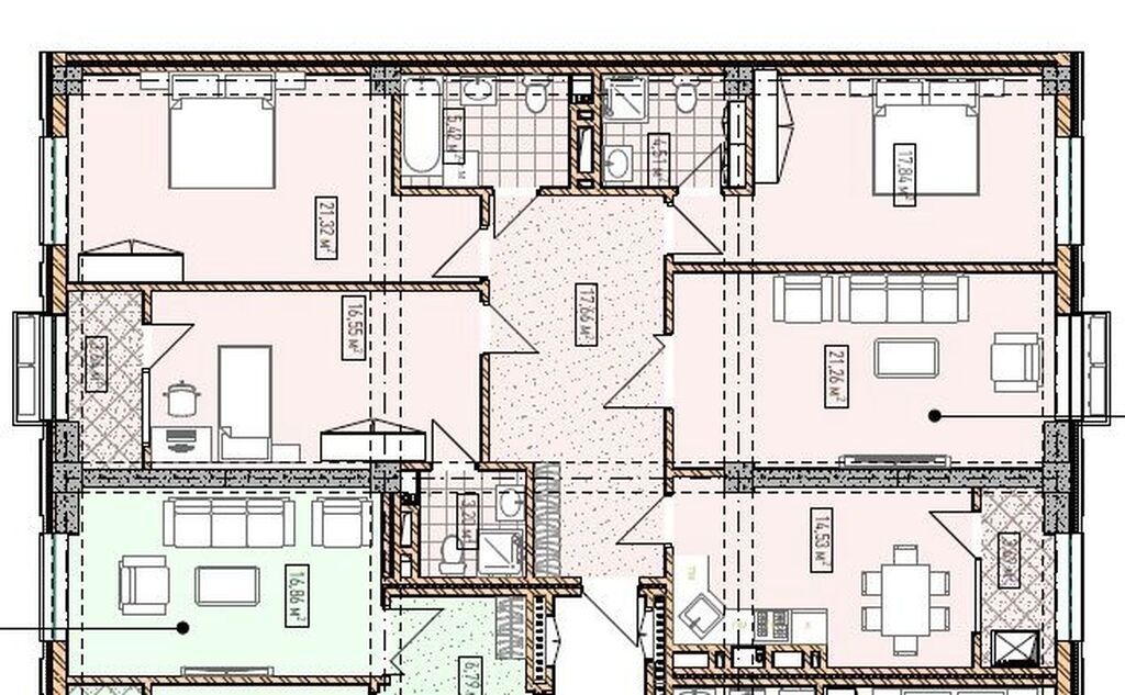 4 комн.1 санузл.130 м²9/14 эт.