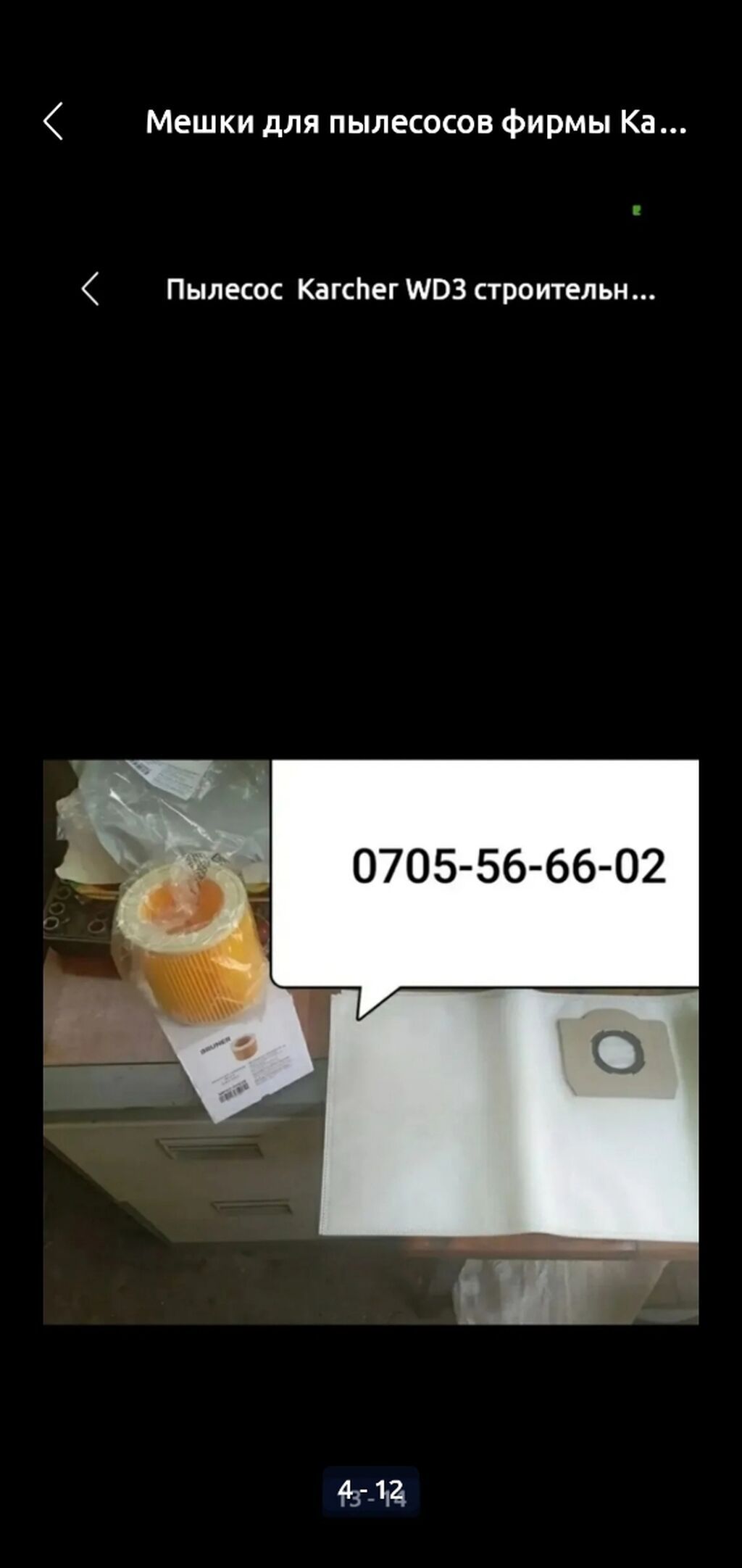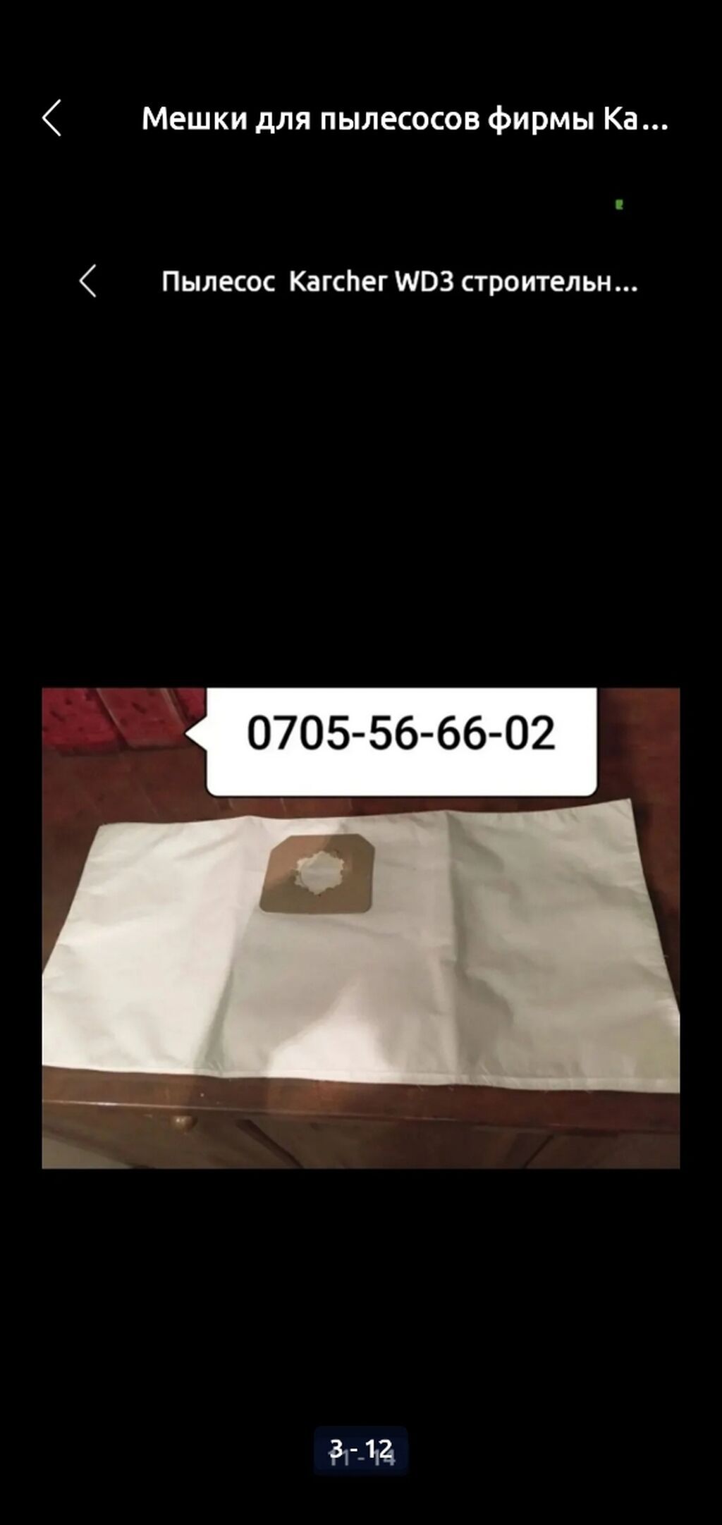 ЩМешки для пылесосов фирмы Карчер Karcher WD 2 Wd 3 хорошего качества флисовые и бумажные в наличии по 1500 сом за 5 штук фильтр патронный 1200 сом карчер мешок бумажный wd 2 plus wd 3 KWd 1 KWd 3 WD 1 classic karcher пылесборники мешки мешок для...