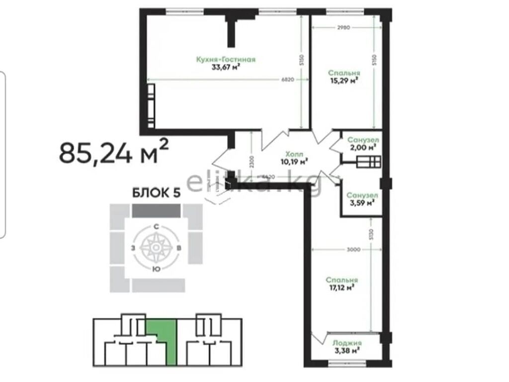 общая площадь: 85м2 этаж:5 из 12