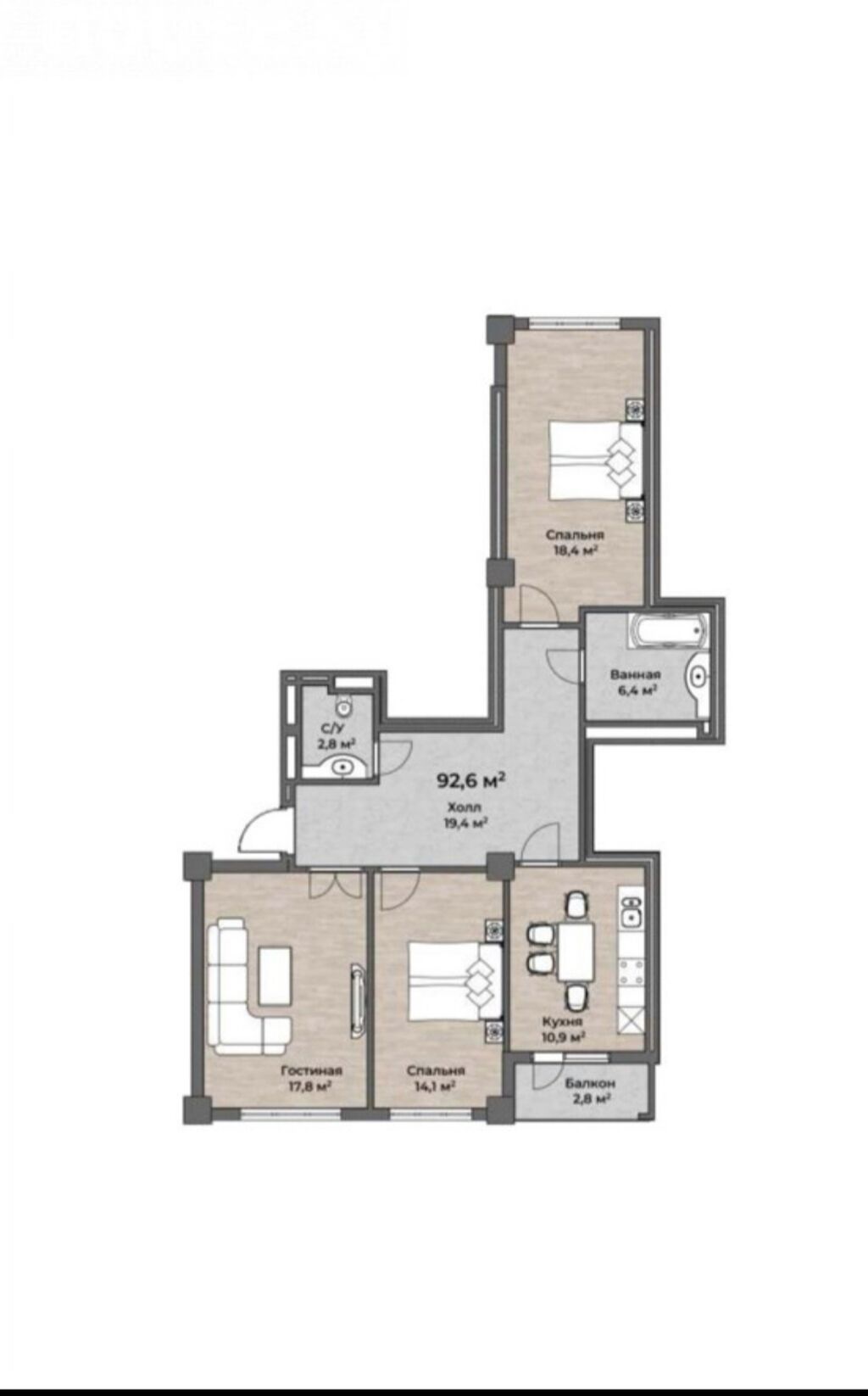 3 комнаты, 102 м², Элитка, 9 этаж, Готовая ПСО (под самоотделку)
