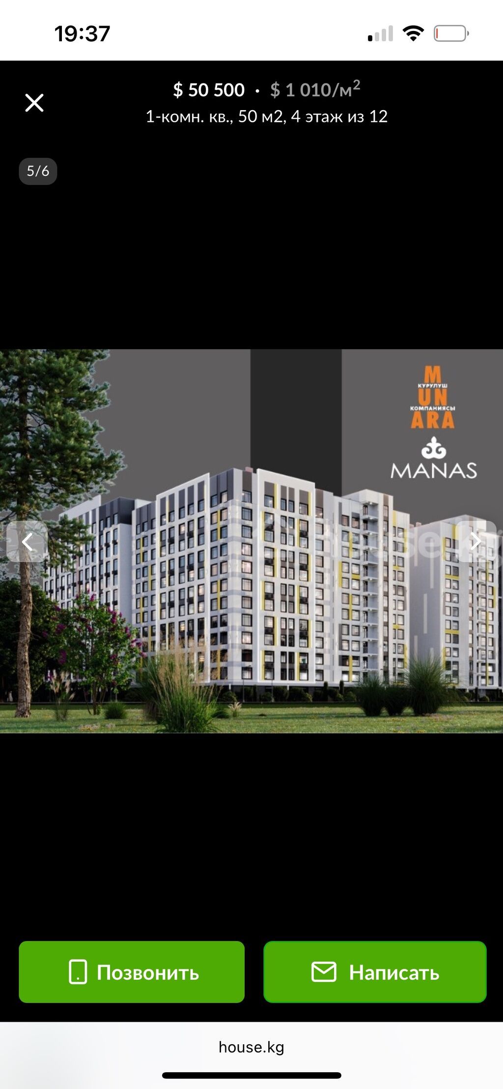Продаётся 1-комнатная квартира (СК Manara, ЖК Manas)