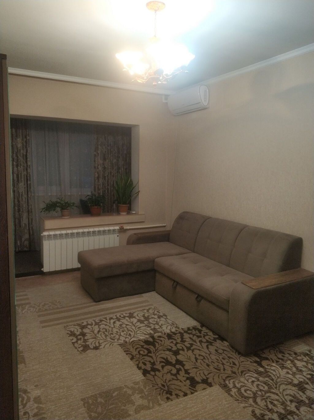 Большая однокомнатная квартира 46м2 М/Р Кок Жар 1 линия по 7 Апреля 1 этаж из 9 с ремонтом мебелью и оргтехникой. есть абсолютно всё для комфортной жизни. кондиционер, аристон стир. машина. вся мебель и техника почти новая куплена недавно....