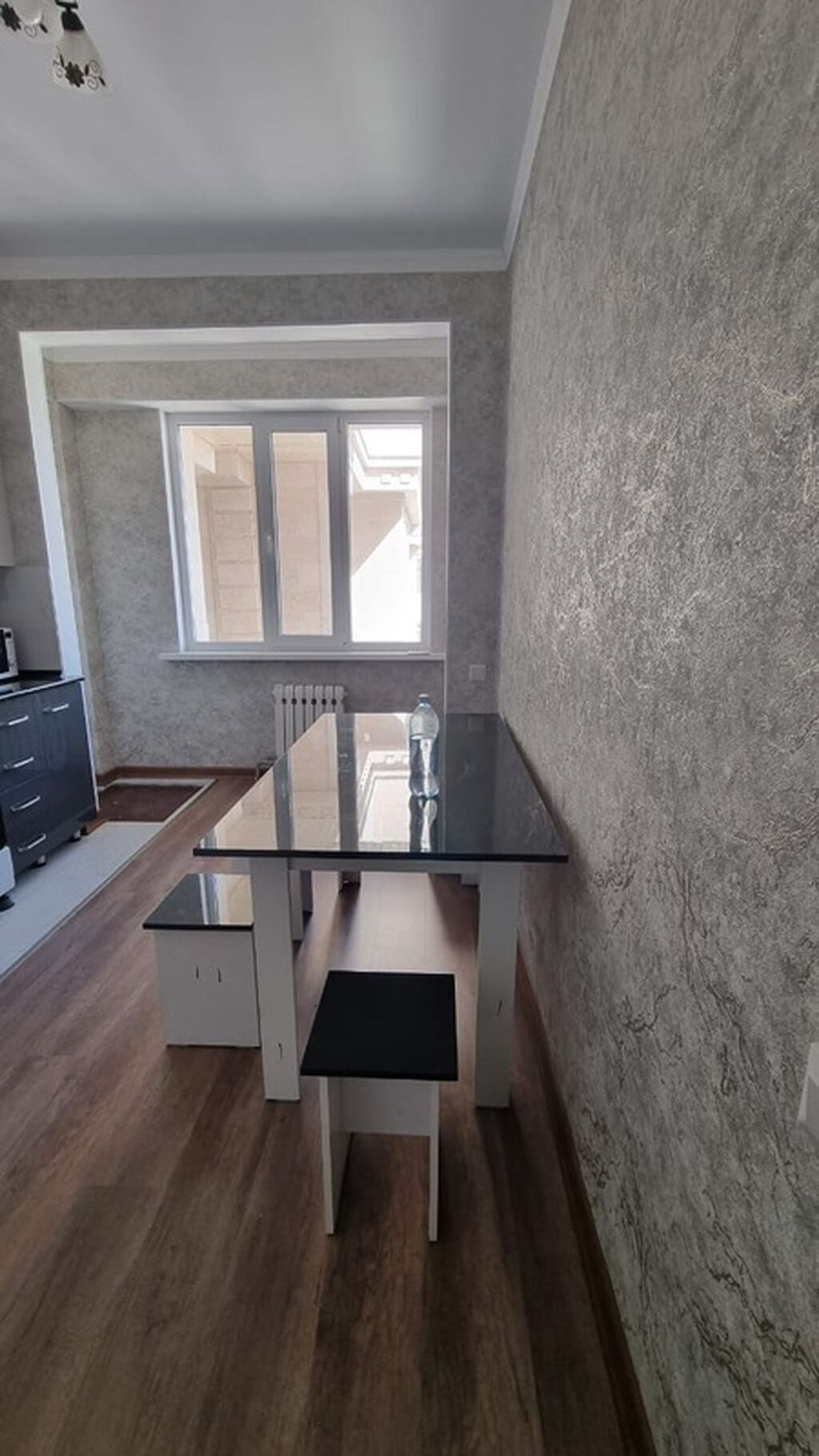 - Просторная кухня с большим окном и обеденной зоной (стол со скамьями).