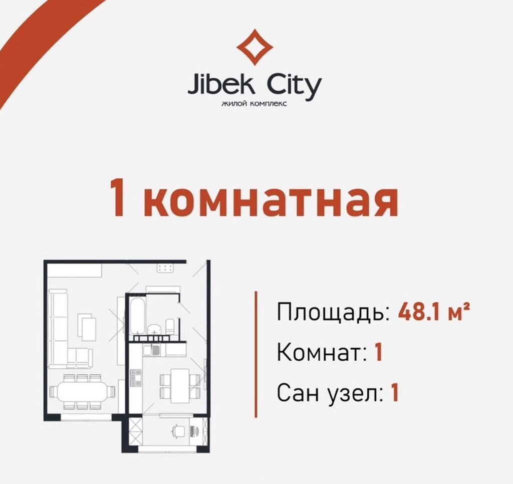 📍Тоголок Молдо/1‑комнатная квартира в ЖК Jibek City.