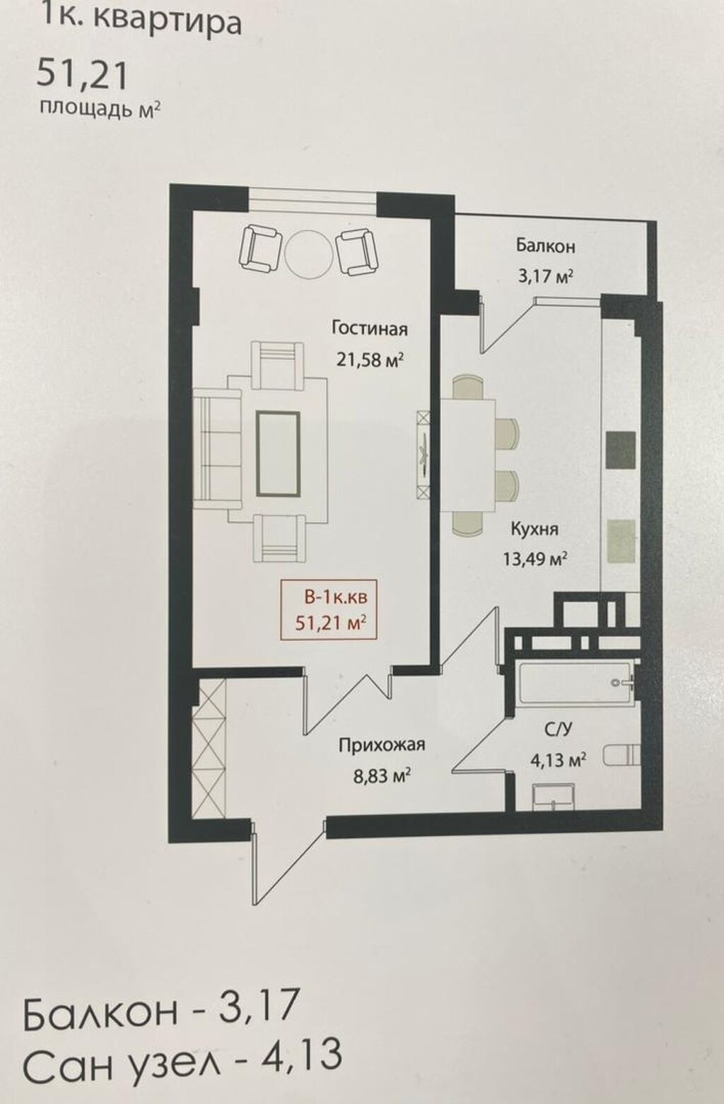 Площадь 51,21 м