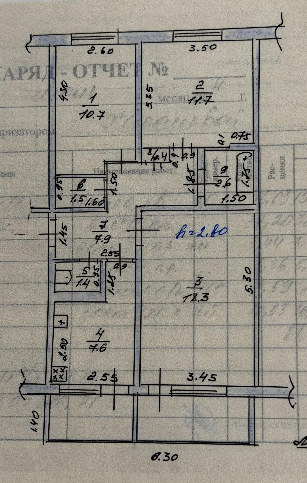 3 комн.1 санузл.62 м²4/9 этаж