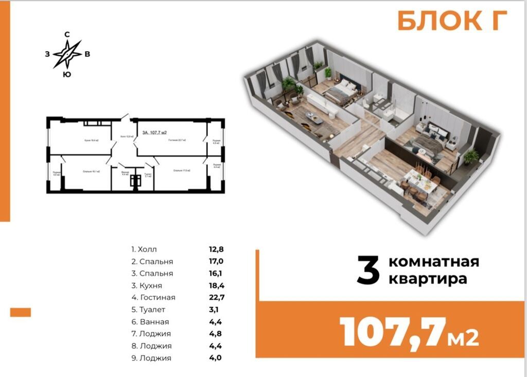 | Комнат3 | Площадь107 м² | Санузлы1 |