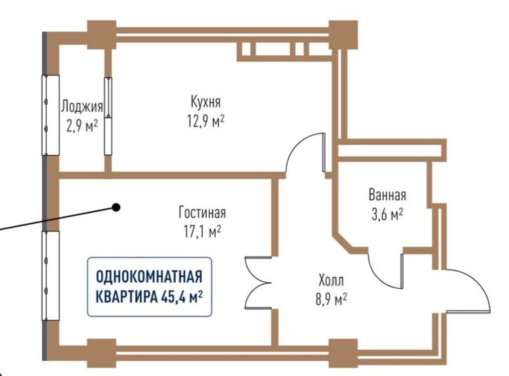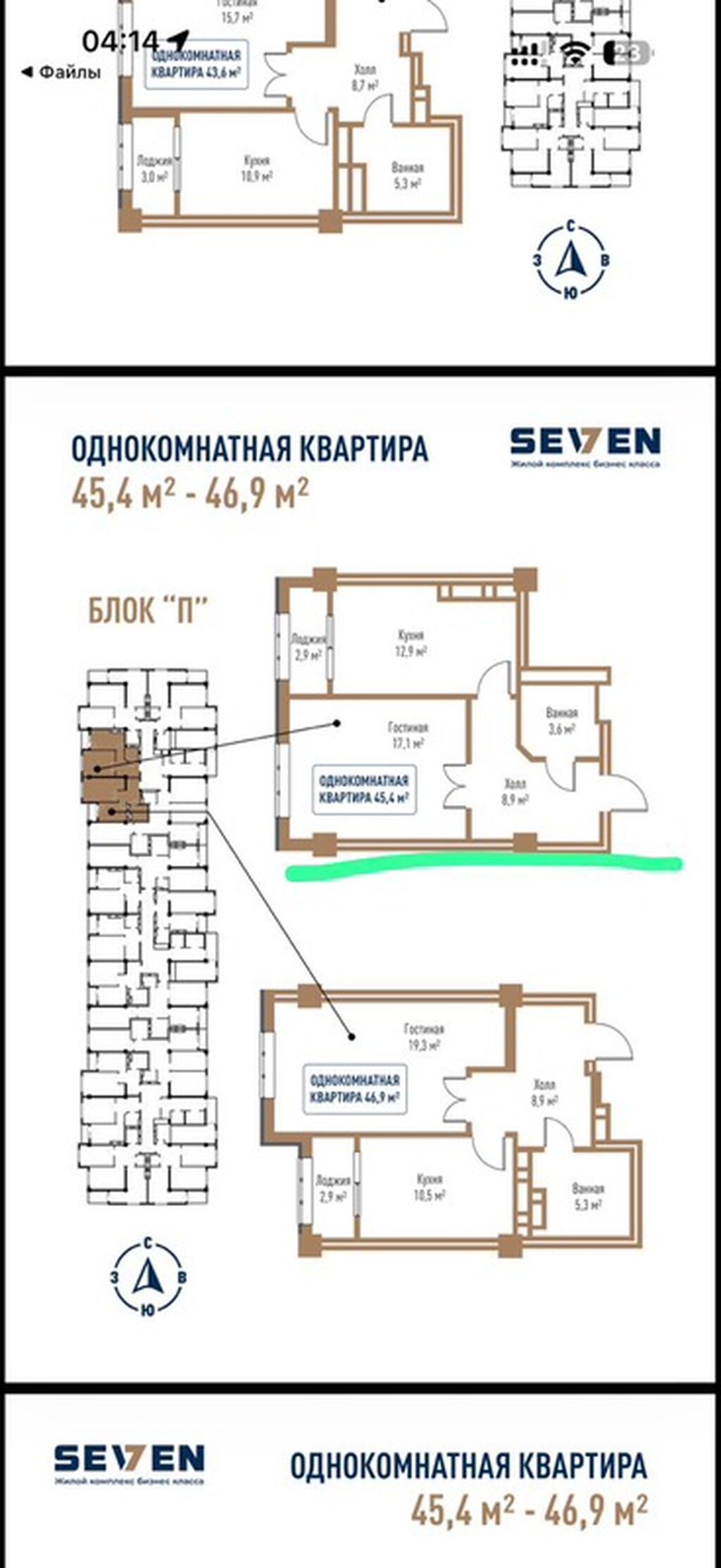 Срочно продаю, Однокомнатная квартира в ЖК SEVEN (бизнес‑класс). Площадь: 45,4 м².