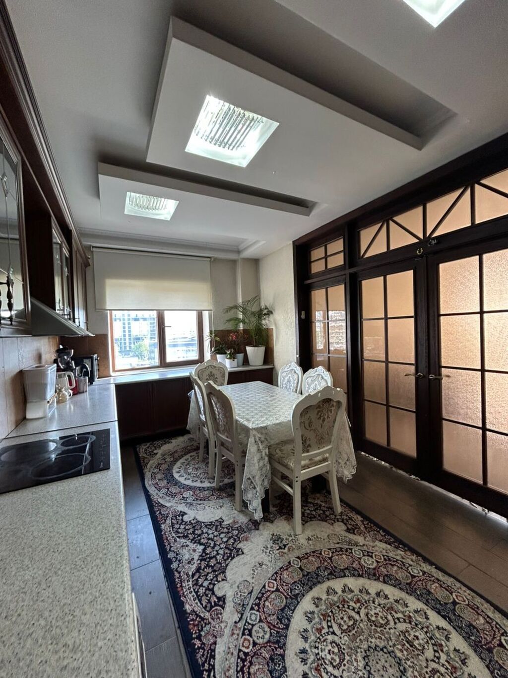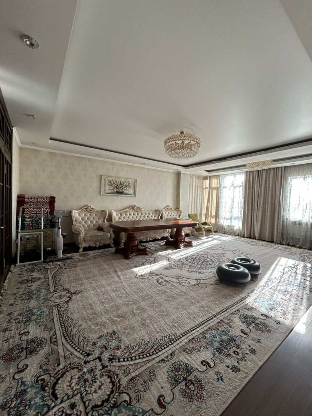 3‑комнатная квартира в самом центре, район Цирка/ЗАГС. В шаговой доступности ЦУМ и ГУМ. Локация активно развивается, рядом строится 44‑этажный Bishkek City. Этаж 7, панорамные окна с видом на юг и запад.