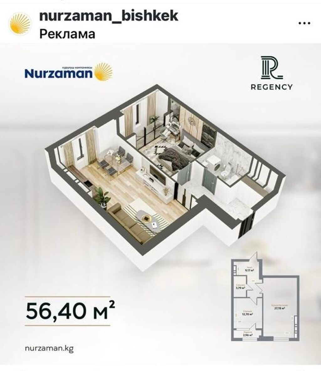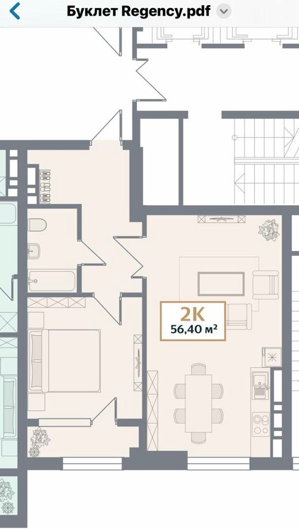 2 комнаты, 56 м², Элитка, 7 этаж, Готовая ПСО (под самоотделку)