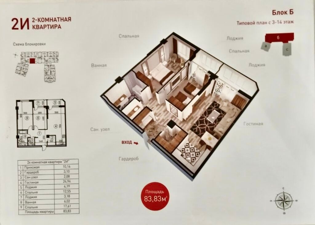 2 комнаты, 84 м², Элитка, 4 этаж, Готовая ПСО (под самоотделку)